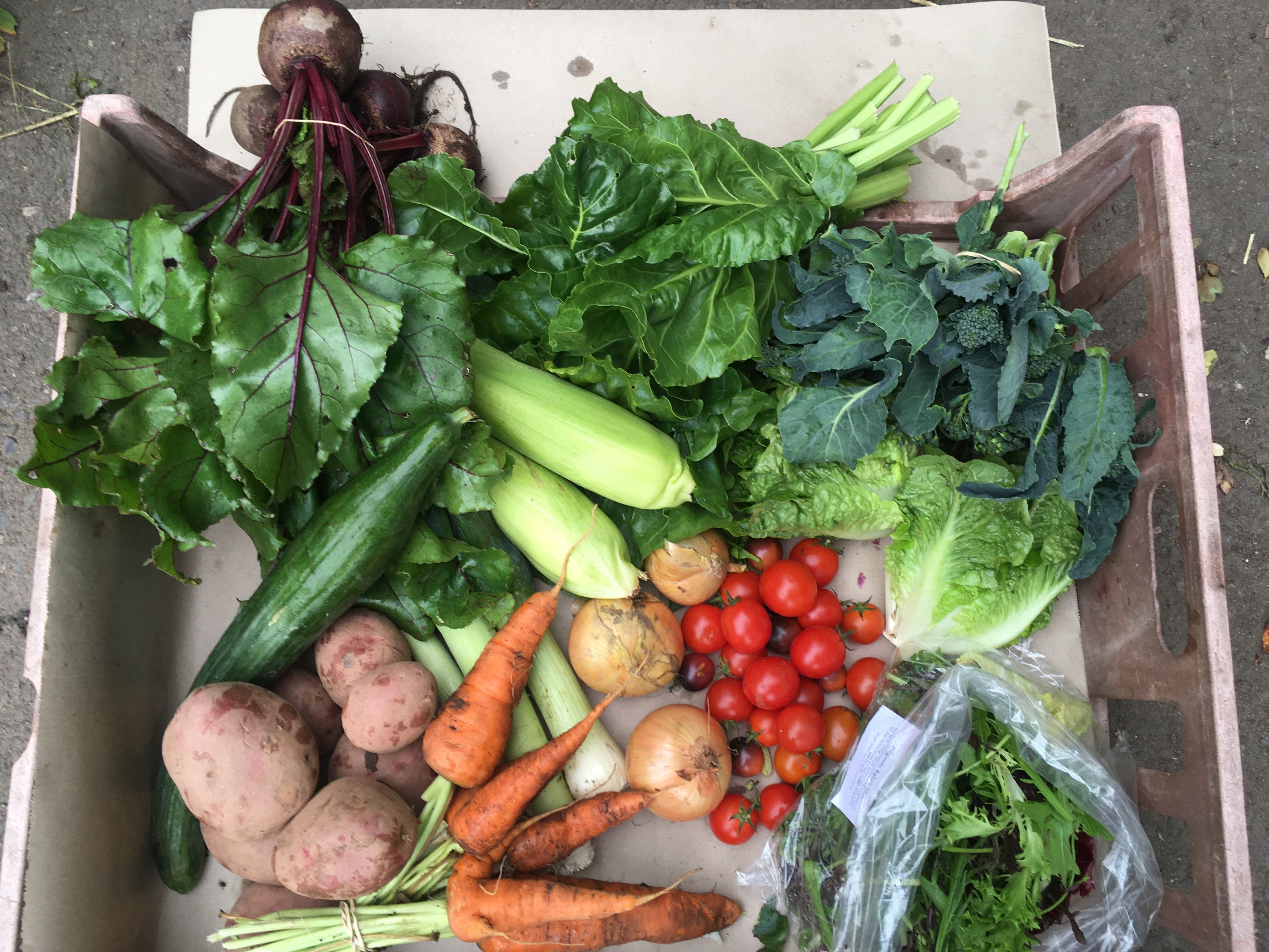 The family box. Containing a balance of staples, cooking veg and salads for cooking