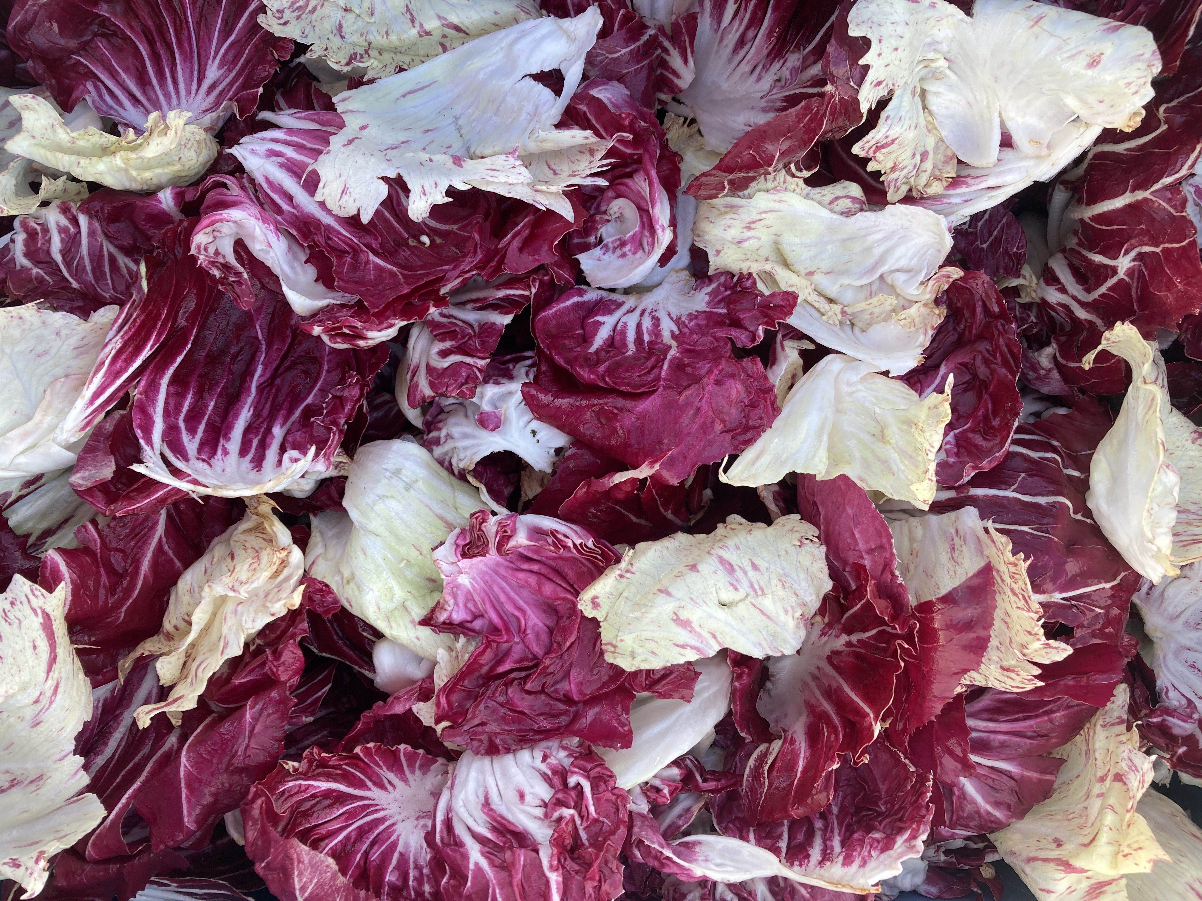 Slightly bitter and sweet round Radicchio. Shred and add to salad with vinegarette dressing or wilt into rissotto for a beautiful pop of colour.