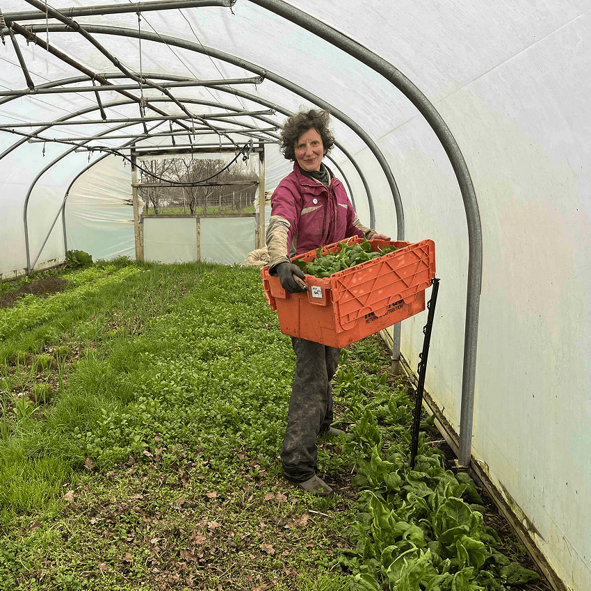 In 1985 and pregnant with our first child, my partner Julian and I managed to buy a 5-acre field in Fladbury, Worcestershire. In 1986 we grew our first crops, raised pigs and registered with the Soil Association. Soon, another 7 acres came up for rent, and we moved onto the land. Those were such fun years, living in caravans, raising children, growing organic food, and starting up our box scheme.