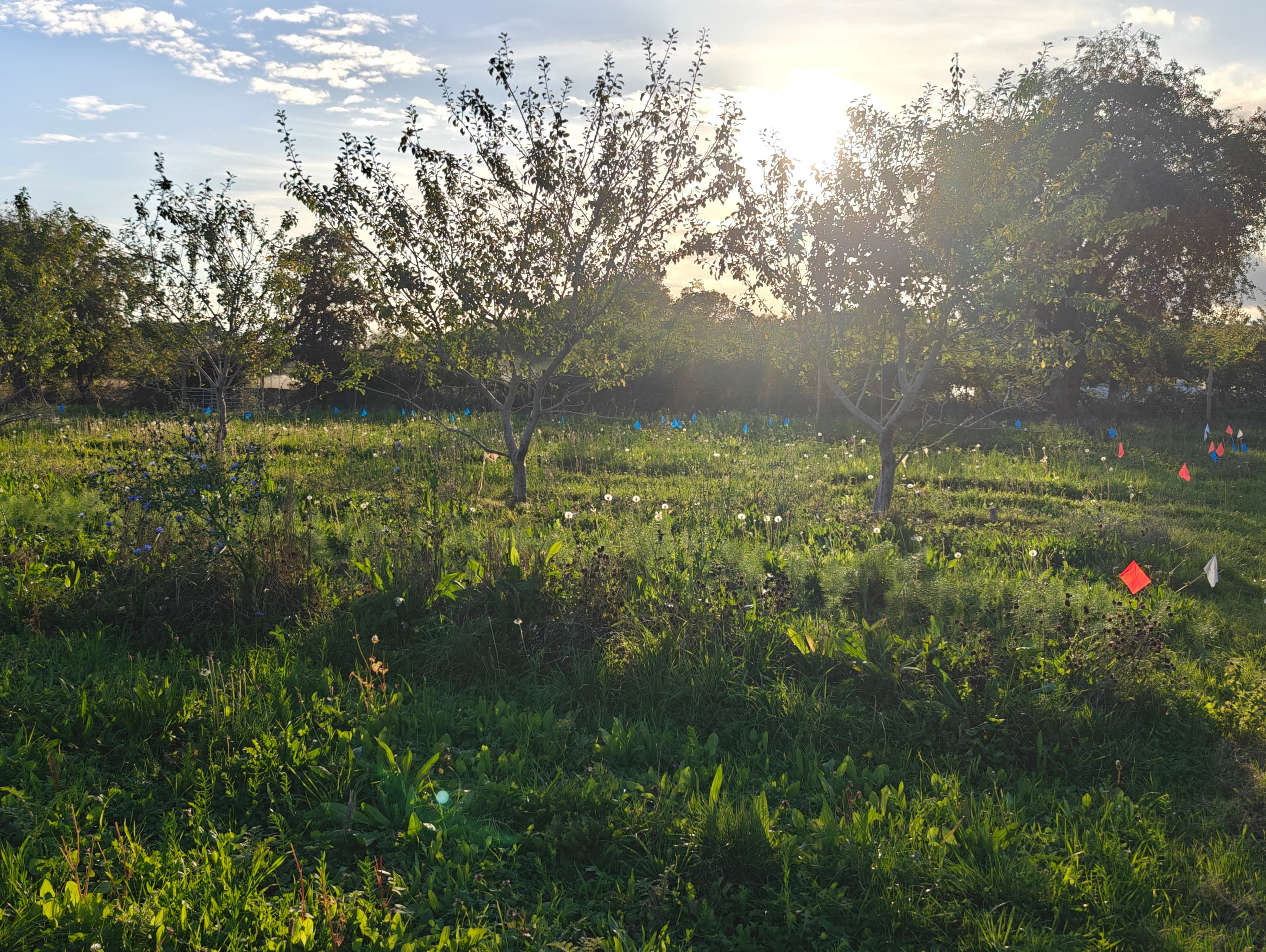 Pictured here some of our beds going into winter. The orange and white flags are left over reminders from which beds had had cover crop sown into them. The blue flags however, are marking particularly good celeriac that we selected to save seed from, this will be the beginning of our very own Oxtons celeriac flock.